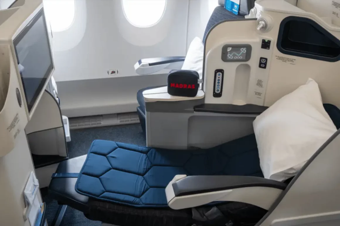 Sur ce vol de nuit, la plupart des voyageurs profitent des heures restantes pour dormir. La nouvelle « Madras » le leur permet tout particulièrement, grâce aux sièges inclinables à 180° qui se transforment en lit intégral. Un surmatelas est proposé, afin d’améliorer le confort du coucher tout en garantissant une propreté parfaite au voyageur, ainsi qu’une couverture épaisse. Dans la trousse de toilette offerte à chaque passager, un masque de sommeil aromatisé à la lavande et de multiples attentions (crèmes pour les mains, bouchons d’oreilles, etc.) permettent de rendre le vol plus confortable.
