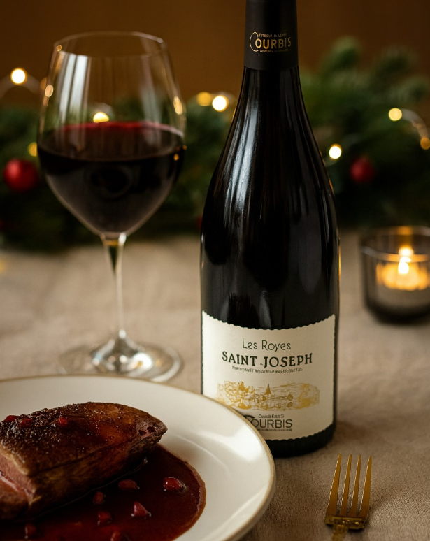 L’architecture de la gamme se déploie avec élégance autour de trois collections. Les cuvées Initiales, d’abord, constituent l’âme du domaine : elles expriment, avec sincérité, la diversité des terroirs et l’approche artisanale des frères Courbis à travers les appellations emblématiques. Les cuvées Parcellaires, quant à elles, relèvent d’une démarche plus introspective : elles naissent de sélections exigeantes, où chaque parcelle est choisie pour sa singularité : un sol, une exposition, une intuition particulière. C’est dans cet écrin que s’illustre le Saint-Joseph « Les Royes », issu d’un terroir calcaire rare dans l’appellation. Ce 100 % syrah, véritable joyau du domaine, offre dans son millésime 2021 une maturité idéale : le vin s’y révèle puissant, délicat et d’une complexité profonde.