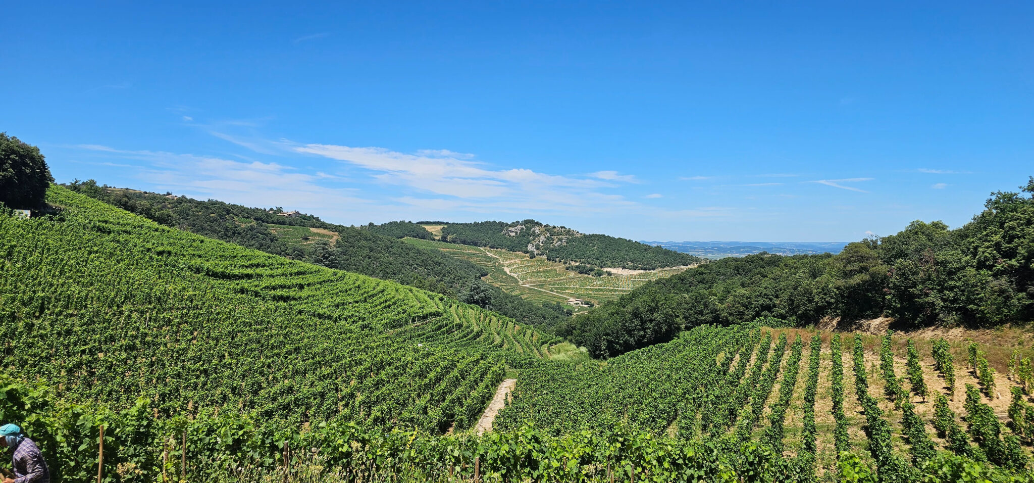 Il est des lieux qui ne se livrent qu’à qui sait attendre la saison juste. Le cirque naturel des Royes se révèle ainsi, dans la profusion tendre du printemps ou sous l’ardeur solaire de l’été, lorsque la vigne, alanguie de lumière, murmure déjà la promesse des grands vins à venir. À la lisière de l’appellation Saint-Joseph, non loin de Cornas, ce vignoble de six hectares déploie ses pentes spectaculaires, orientées plein sud, comme un secret jalousement gardé. Protégé des vents du nord par son relief escarpé, il mêle la rigueur de la vigne à l’abandon maîtrisé d’une végétation méditerranéenne. Le regard s’y perd, saisi par la beauté presque irréelle de cet amphithéâtre naturel.